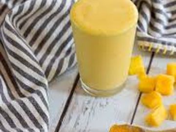 Banana, Flax Seed, Maca. Tumeric, Dates, Cinnamon, Vanilla Extract, Ginger and Almond Milk.